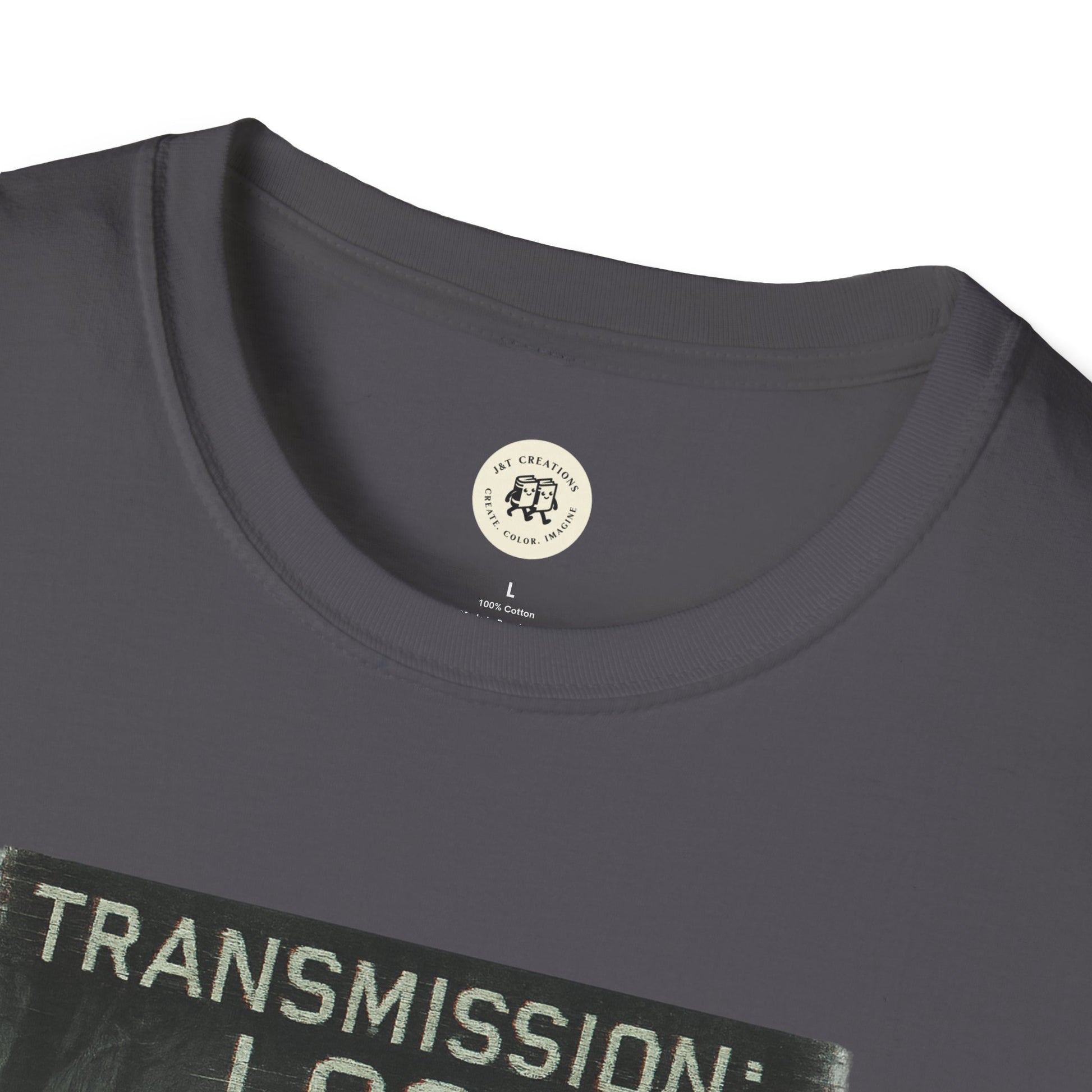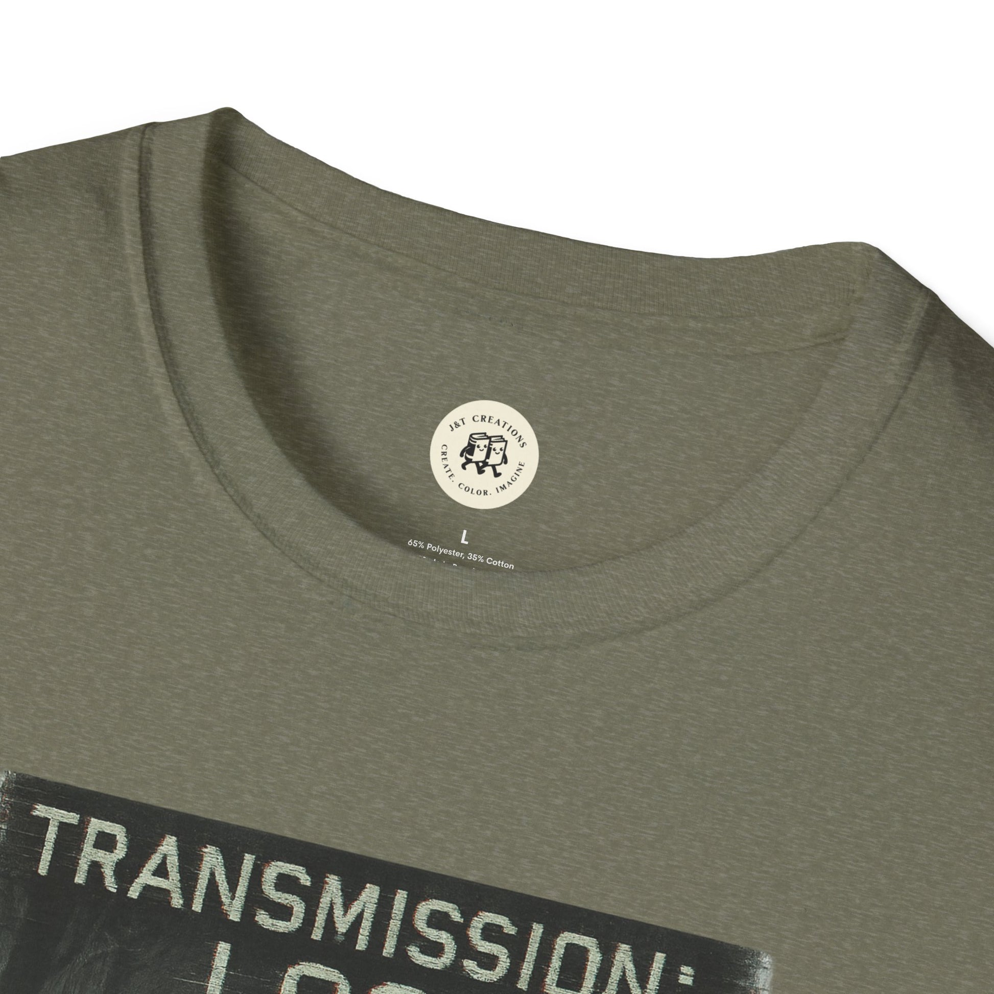 Step into the unknown with the mysterious lost transmission t-shirt from J&T Creations. This unisex graphic tee blends eerie style with comfort. Its unique design features a bold, haunting print, perfect for those who love statement apparel. The mysterious lost transmission t-shirt stands out in any crowd, making it a conversation starter for Halloween or any day.