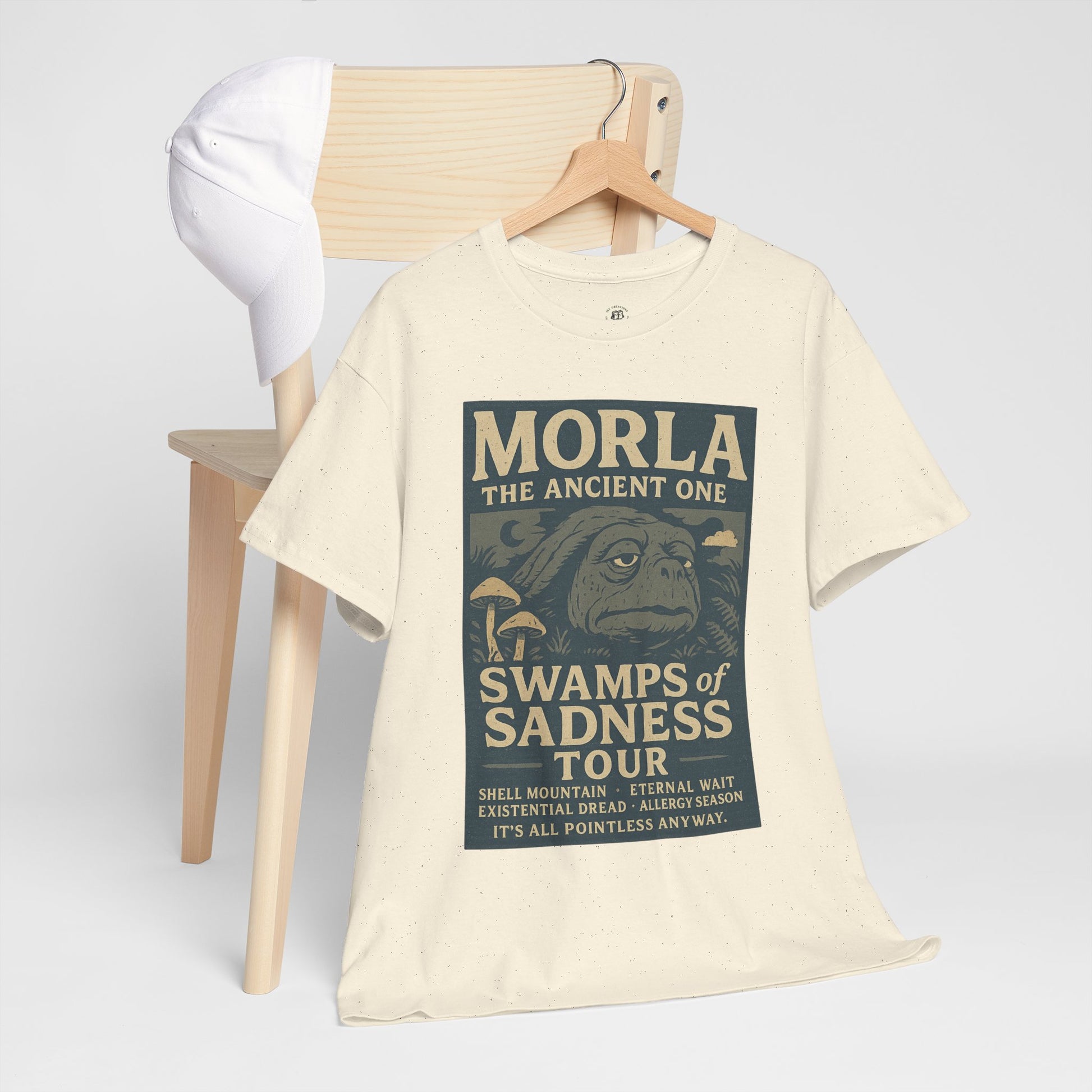 Step into nostalgia with the Neverending Story Morla t-shirt. This unisex heavy cotton tee is designed to honor the classic fantasy film. The print features Morla, the ancient one, in a bold and detailed graphic. Soft cotton makes this shirt comfortable for daily wear.